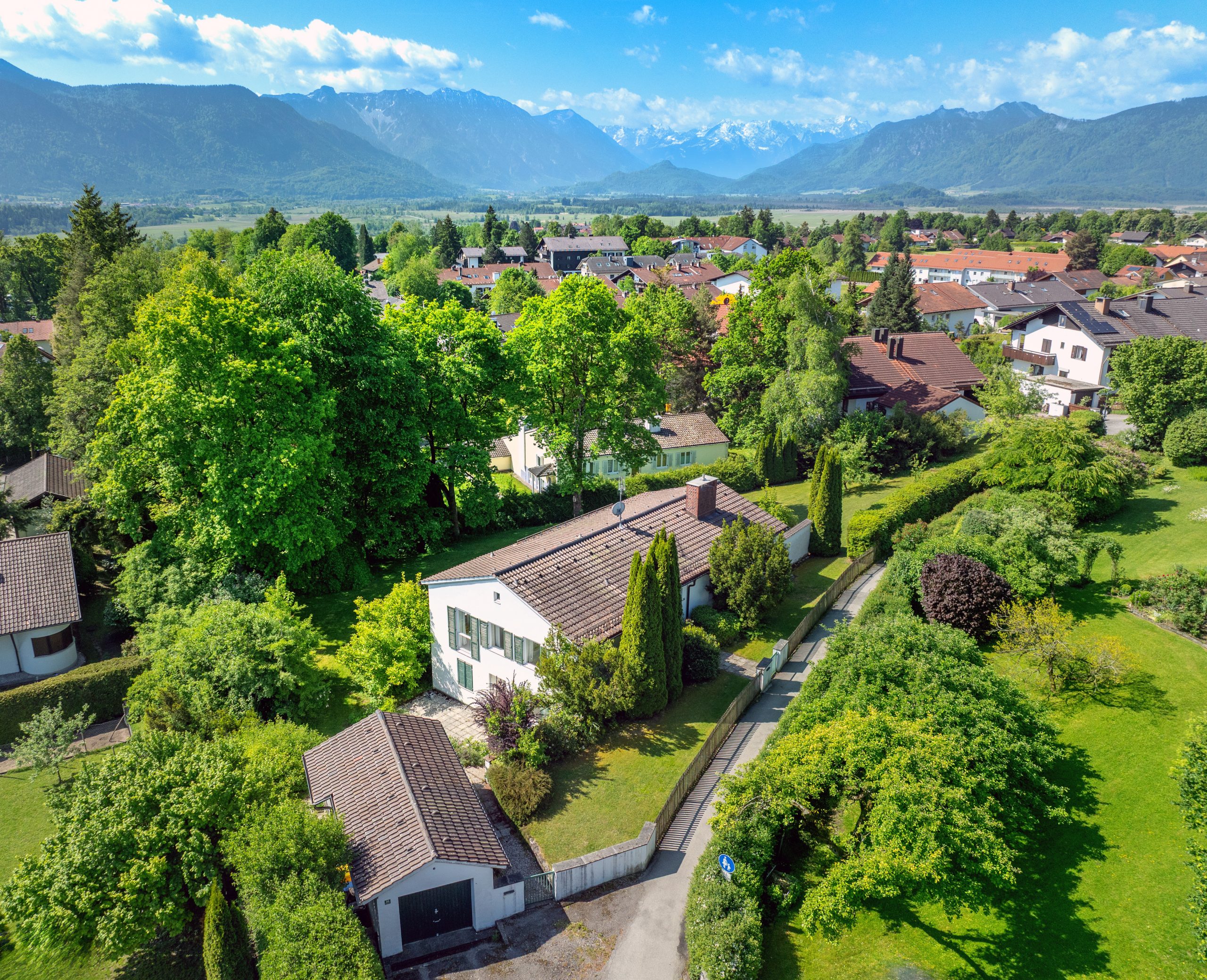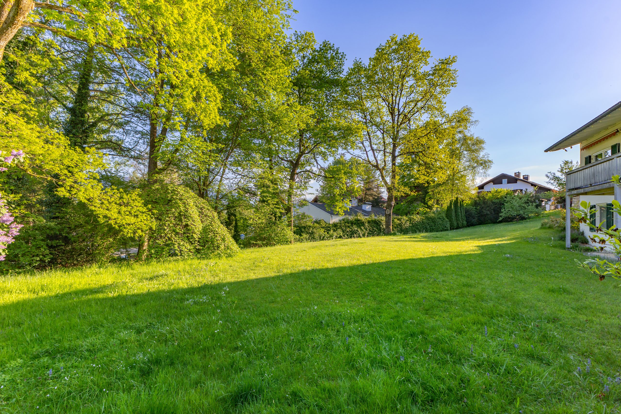 Das Baugrundstück liegt in einer der besten Wohnlagen von Murnau – im etablierten Villenquartier am Philosophenweg / Lüssweg. Die Südhanglage sorgt für viel Sonne und einen weiten Blick Richtung Alpen. Trotz sehr ruhiger Lage sind Ortskern, Bahnhof, Schulen, medizinische Versorgung und der Staffelsee in wenigen Minuten erreichbar. Über die A95 ist München in rund einer Stunde erreichbar.